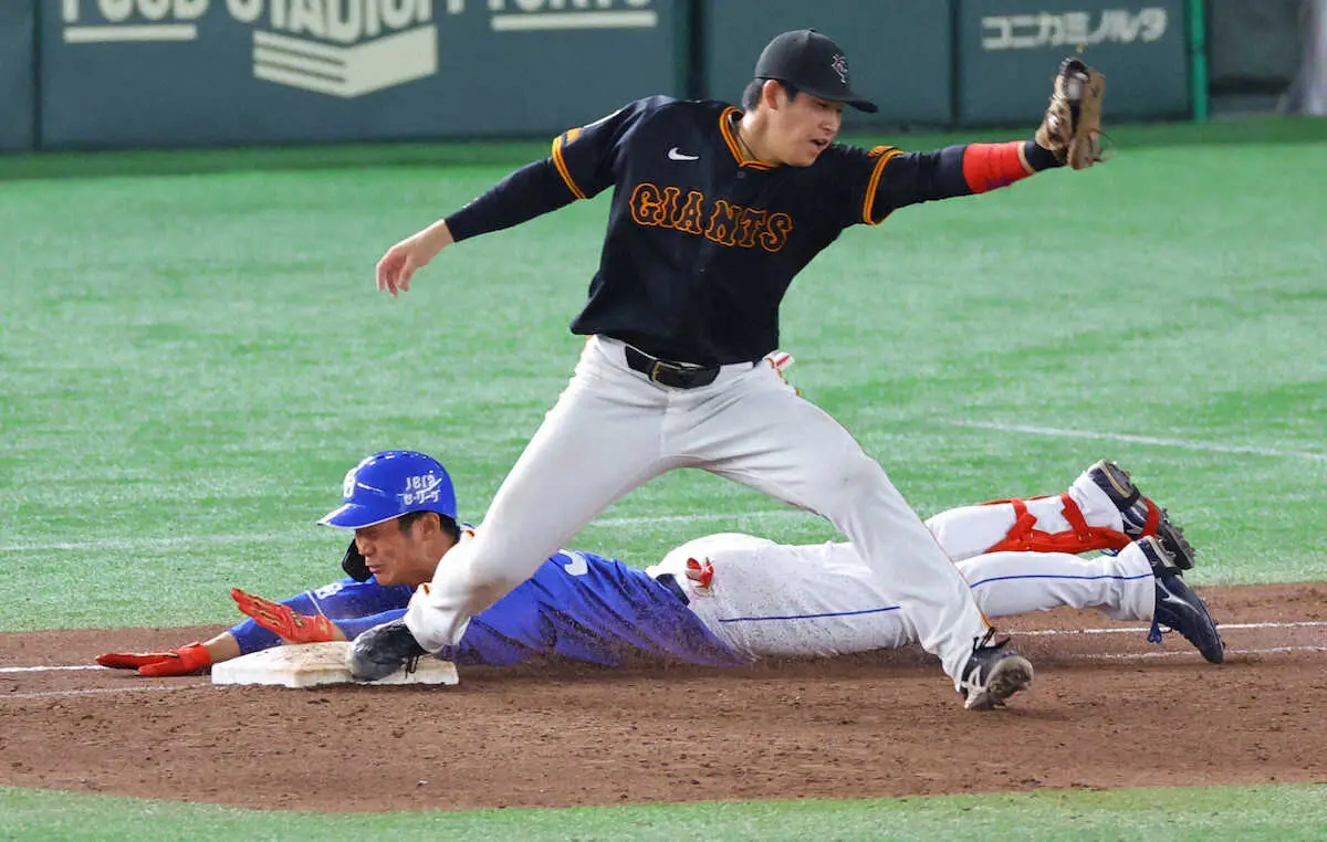 3点リードの9回に先頭打者で代打で登場。巨人・平内の初球、149キロ直球を打ち返すと、打球は平内のグラブをはじいてカバーに入った二塁手の吉川が捕球。