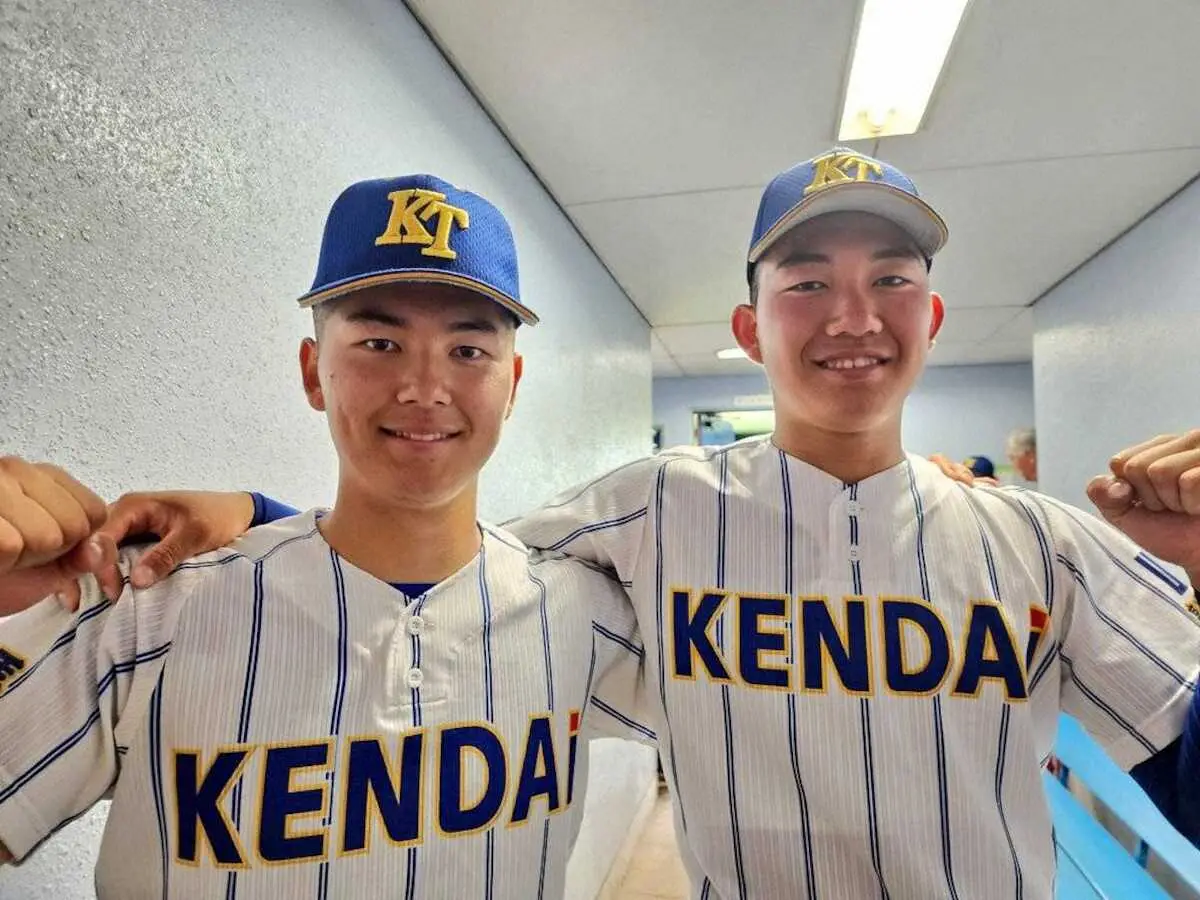 決勝打を放った佐藤龍(左)、石垣(撮影・柳内 遼平)