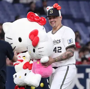 オリックスにハローキティから特別ギフト “契機”マチャドはカチューシャ姿で満面に笑み