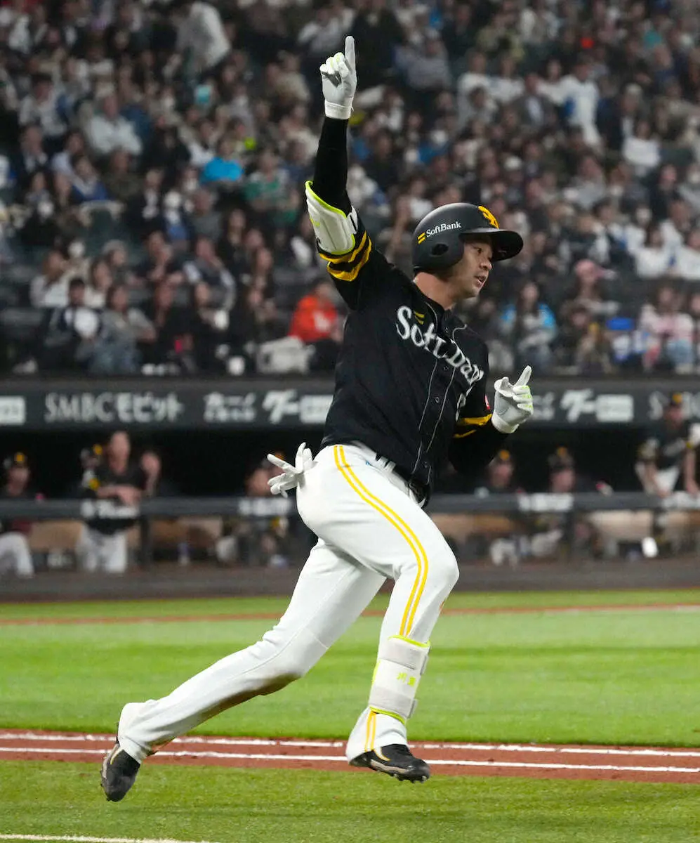 ソフトバンクの川瀬晃内野手(27)が20日、首位・日本ハム戦でプロ初本塁打を放った。2―2の6回、先頭で勝ち越しの右越えソロ。プロ10年目、通算785打席目で放った一発が決勝弾となった。チームは王貞治球団会長の85歳の誕生日を白星で飾って3連勝。今季初めて貯金をつくり、順位は4位のままだが、日本ハムとのゲーム差を2・5とした。