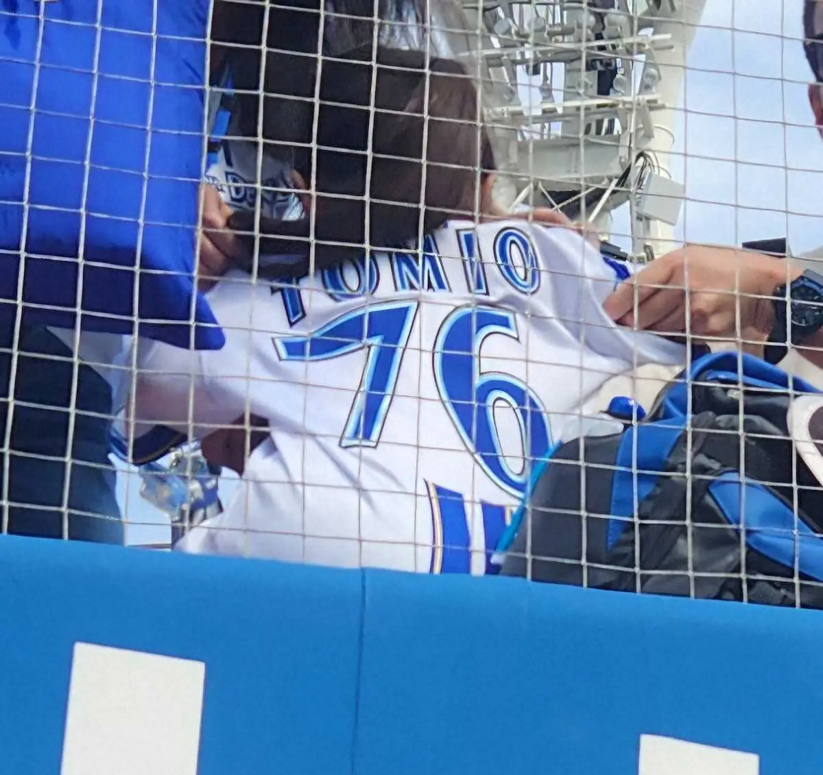 ◎前日、スタンドの小さな女の子に「とみおちゃ~~ん」と声をかけられてご機嫌だったDeNA・田代富雄野手コーチ。この日は「今日は“とみおちゃん”、ないじゃん!」とスタンドを見上げると、女の子は背中に「TOMIO」と書かれたユニホーム姿でした。