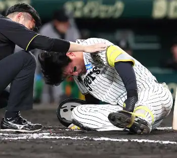 阪神・森下 痛っ8回自打球直撃でうずくまり…途中交代「(打球が当たったのは)膝の下くらい」