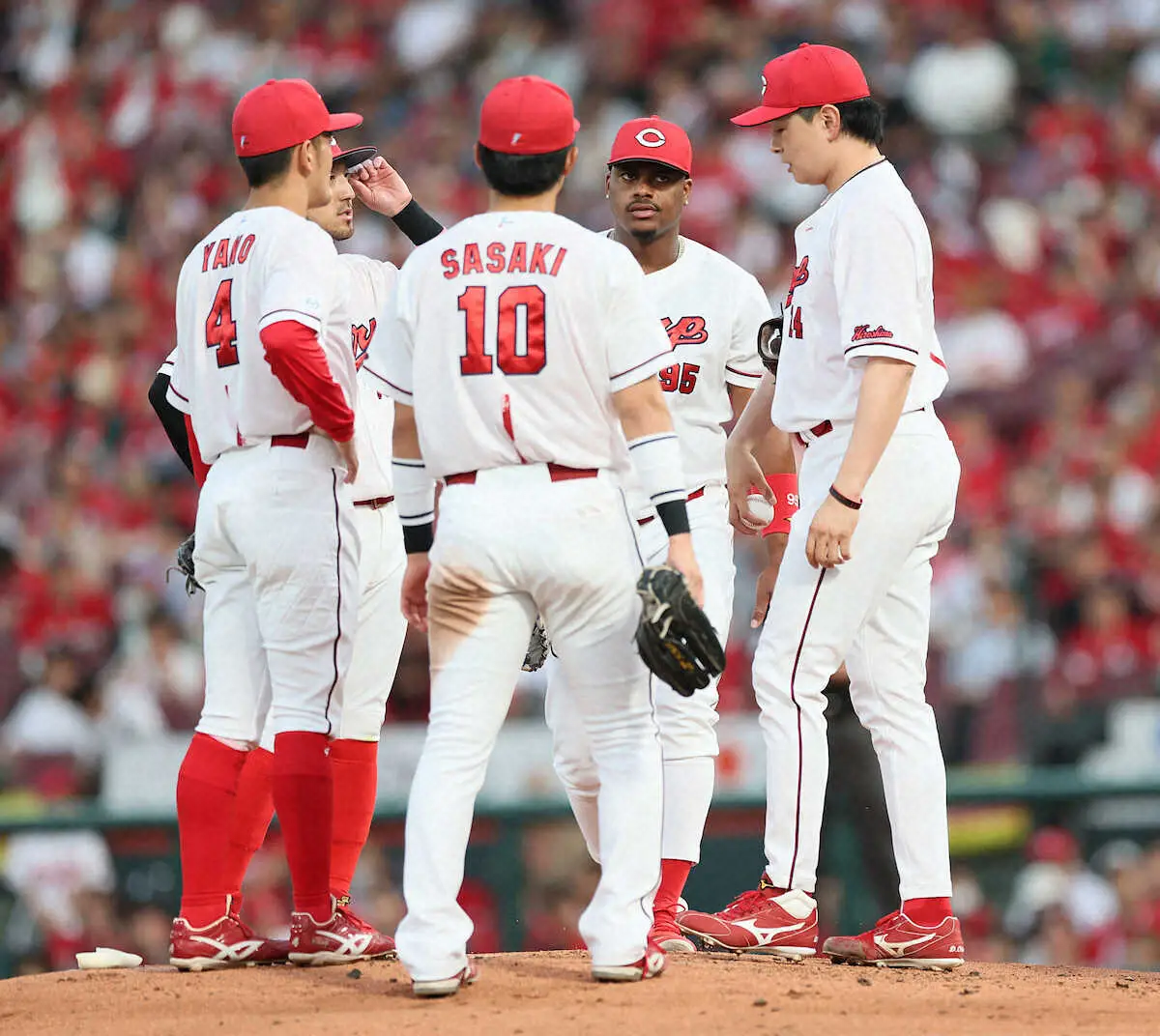 スライド登板の広島・大瀬良には不完全燃焼の登板となった。今季最短タイの5回で降板。初回2死三塁で宮本に先制打を許すと、3回には2四死球などで無死満塁を招き、併殺崩れの間に2点目を献上した。今季最多の4四死球を与える内容に「制球が定まらず、救援陣や野手に迷惑をかけてしまった」と反省した。新井監督は「5回で100球。ちょっと球数が多かったかな。次(の6回)も行ったら120球になりかねなかったので」と説明した。