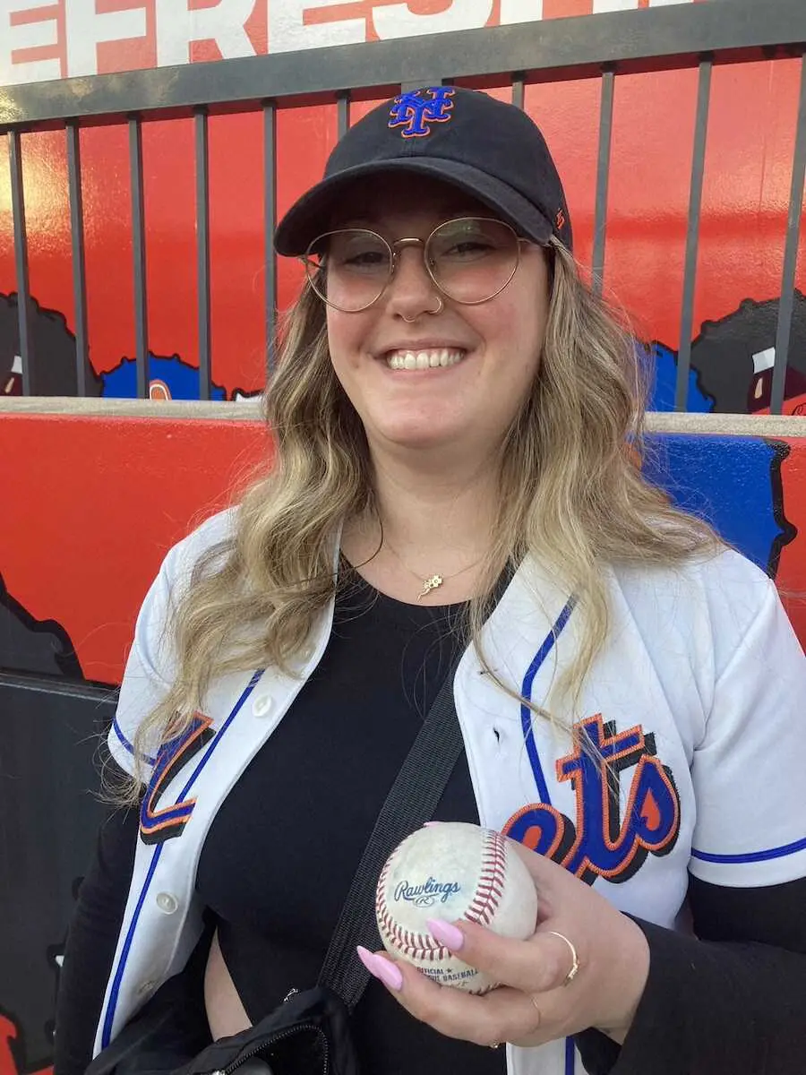 メッツファンだが「(打球は)スタンドで弾み、2人を飛び越えて私の目の前に飛んできた。震えた。(本塁打球を)捕ったのはこれが初めて」と大興奮。