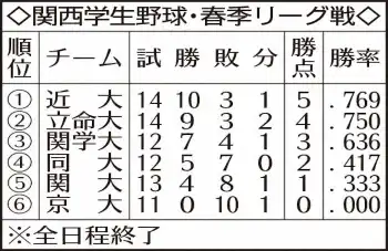 【関西学生野球】近大が4季ぶり50度目の優勝 プロ注目の内野手、勝田成がMVP