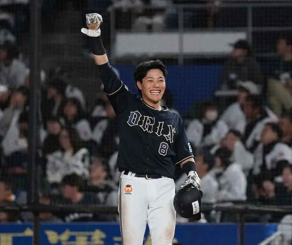 オリックスのドラフト1位・麦谷が、一塁上で渾身(こんしん)のガッツポーズを決めた。同点の9回2死二塁で4番手右腕・中森の151キロ直球を捉え、決勝の右前適時打。途中出場のルーキーが、土壇場でチームを勝利へとけん引した。