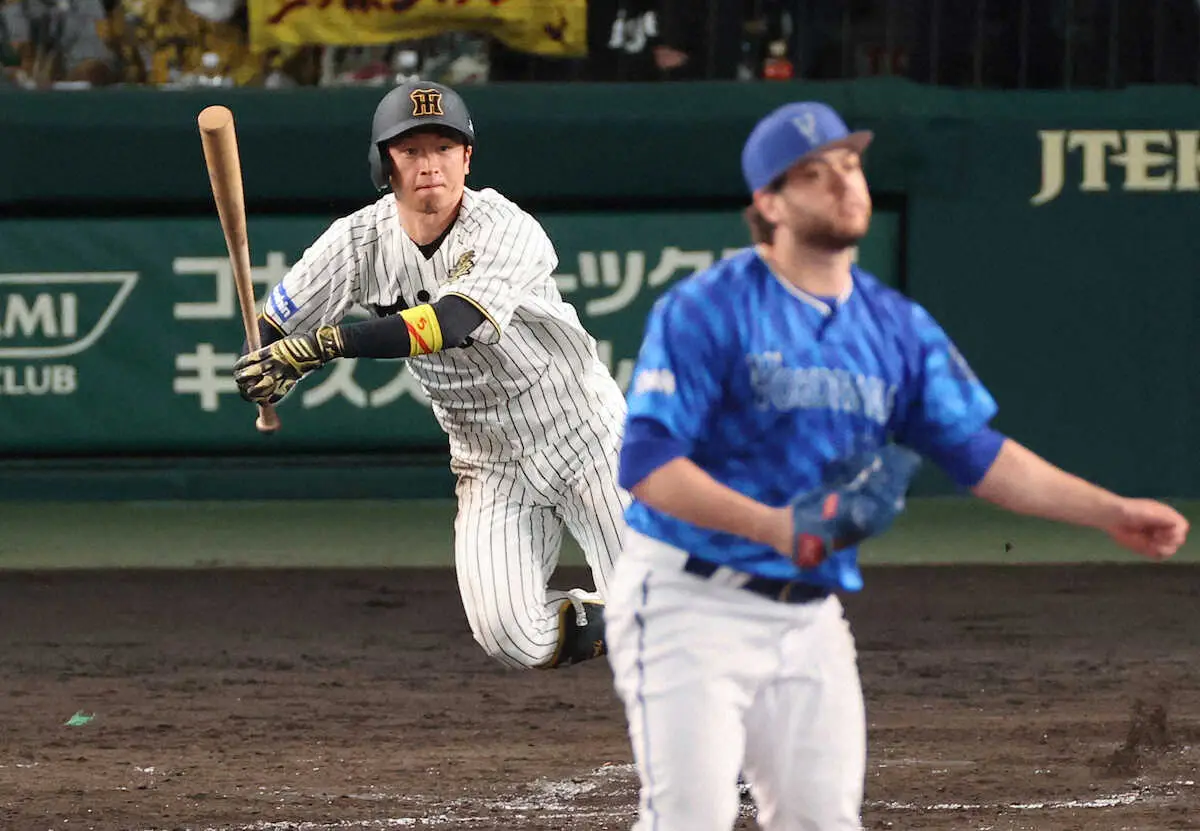 背番号5に快音の感慨はなく、反省にも似た言葉を淡々と並べた。初回先頭の第1打席は、ファウル4球でカウント1―2から一ゴロ、3回2死からの第2打席は、ファウル5球でフルカウントから四球をもぎ取った。「(ケイは)全部が良かった。何とか球数(を投げさせる)というところ」。適時打までに近本一人で21球を投げさせ、左腕にボディーブローを食らわせた。