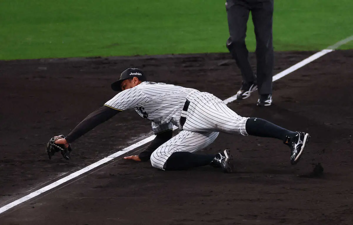 阪神・ヘルナンデスがまた三塁の守備で沸かせた。5回1死、山本の三塁線を襲う打球を飛び込んでキャッチ。素早く起き上がって一塁に送球した。「コーチがいいポジショニングを教えてくれるので、そのおかげでいいプレーができたと思う」。三遊間の打球に横っ飛びキャッチした前日に続く美技を披露。4回には中前打を放ち、「最低限の結果が出て良かった」と4戦連続先発出場に応えた。