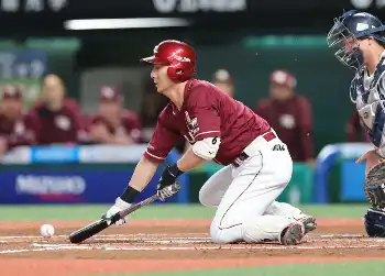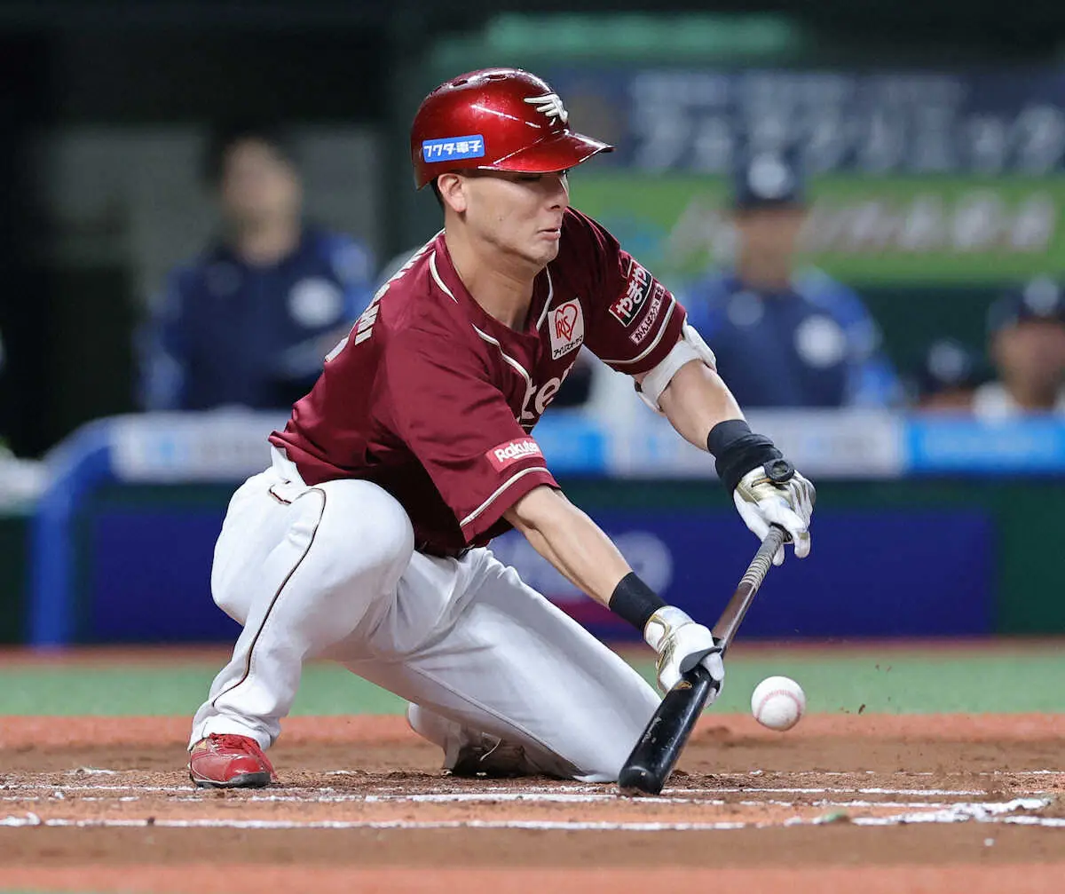 楽天・村林 プロの技V打 スクイズ外しワンバンを神ファウル→左翼線へ打ち返す