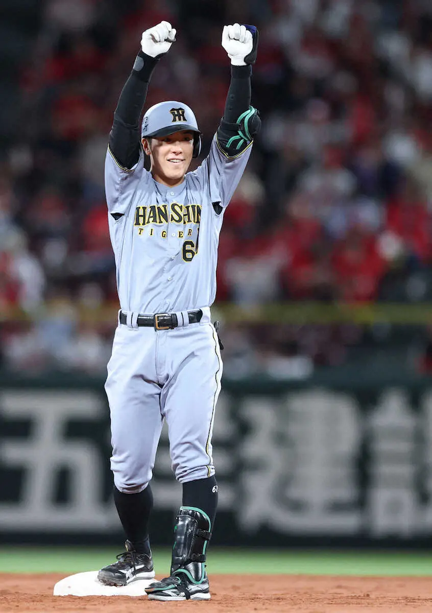 阪神の豊田がプロ初打点をマークした。2点リードで迎えた9回1死二、三塁で代打として登場。カウント1―2から広島・塹江の内角154キロの直球をはじき返し、中越えの適時二塁打とした。