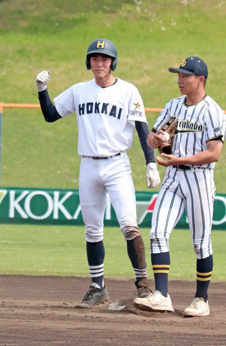 北海は2回2死一、三塁から吉井天星内野手(3年)の遊撃内野安打で先制、3回は2死二塁から佐竹徠都外野手(2年)の右前打で2点目、4回は1点を追加してなお2死二、三塁から長南凜汰郎捕手(2年)の左翼2点二塁打と、10安打で着実に得点を重ねた。長南は「後ろにつなごうという意識だった」と話した。