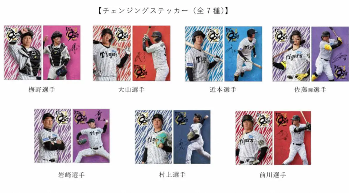 ステッカーは梅野、大山、近本、佐藤輝、岩崎、村上、前川の7種類あり、ランダムで1点がプレゼントされる。