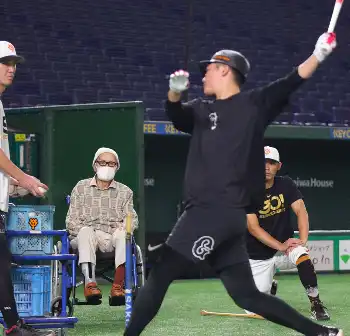 2024年6月、坂本の打撃練習を見守る長嶋終身名誉監督