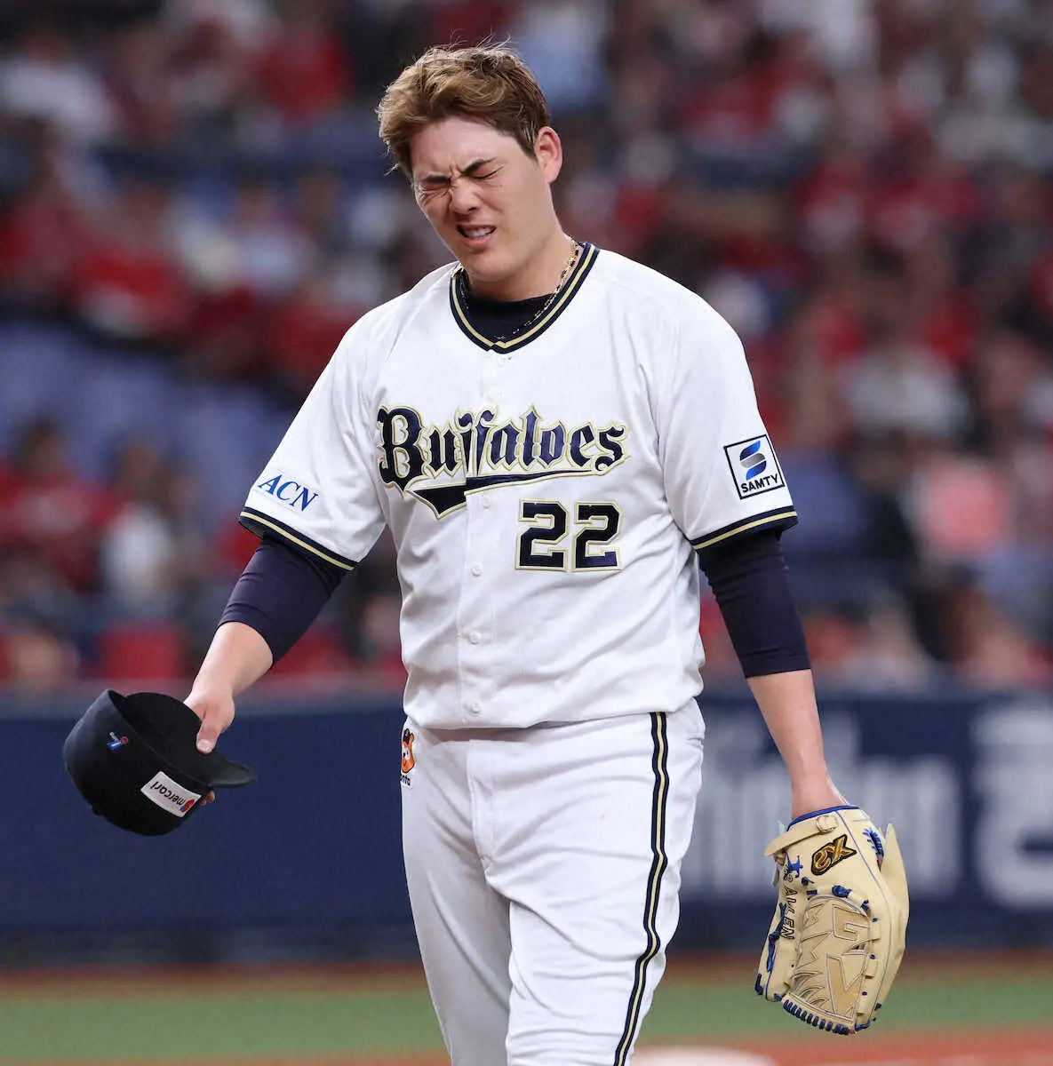 今季3敗目(4勝)を喫した右腕は「攻撃につながる投球ができず、申し訳ないということしかありません」と唇をかんだ。打線も広島の左腕・玉村の前に5回まで無得点。6回2死一、二塁で杉本が右前適時打を放ち1点を返すと、4点劣勢の9回に再び杉本が栗林から6号ソロを放ったが、序盤の失点が痛かった。