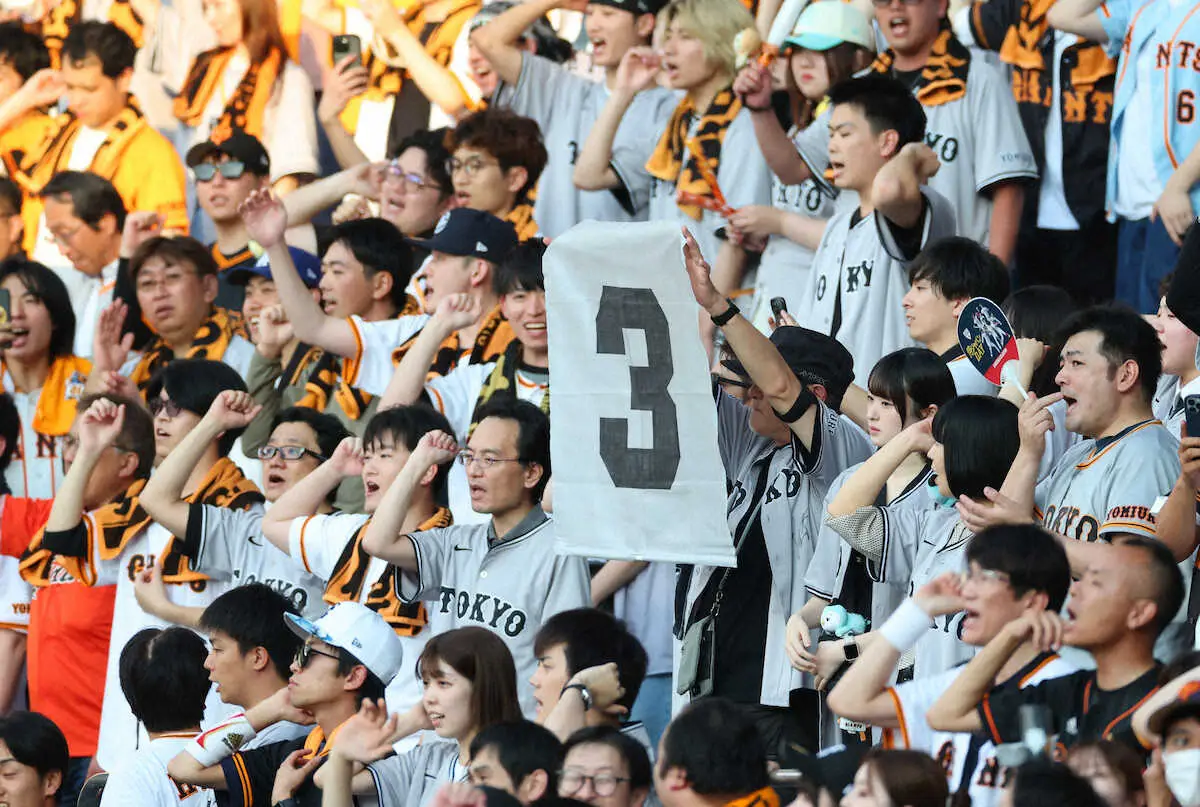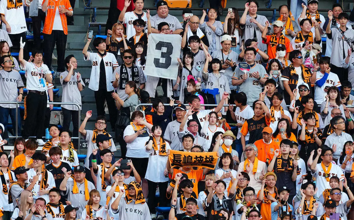 <ロ・巨>試合前、「長嶋コール」するレフトスタンド(撮影・長久保 豊)