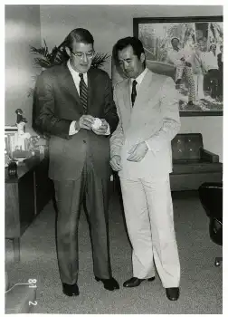 笑顔のピーター・オマリー元ドジャース会長(一番左)と長嶋茂雄さん(右)