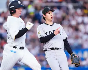 <交流戦 ロ・巨2>10回、高部にサヨナラ押し出し死球を与えしゃがみ込む大勢(撮影・沢田 明徳)