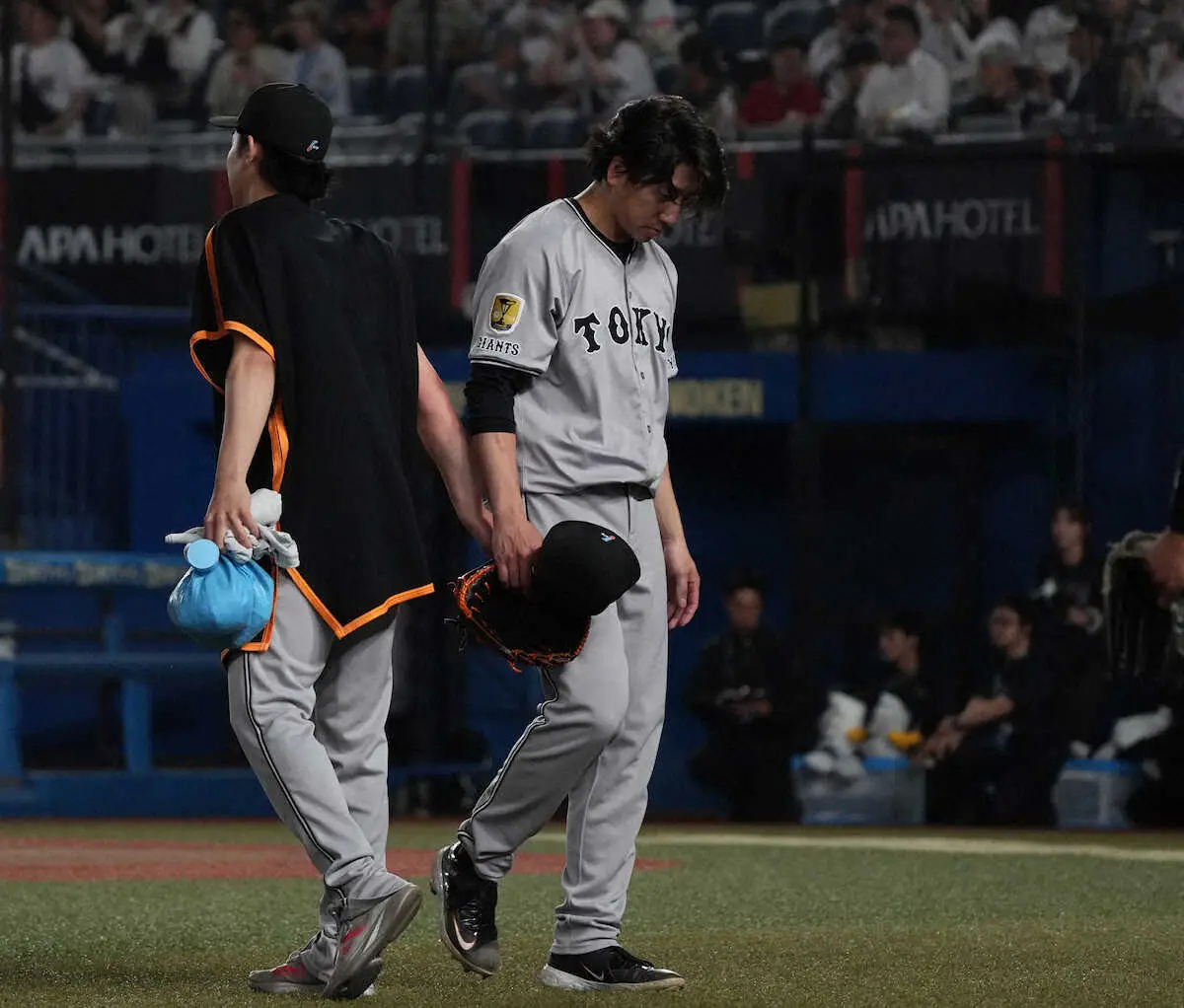 <交流戦 ロ・巨2>10回、高部にサヨナラ押し出し死球を与え肩を落とす大勢(撮影・沢田 明徳)