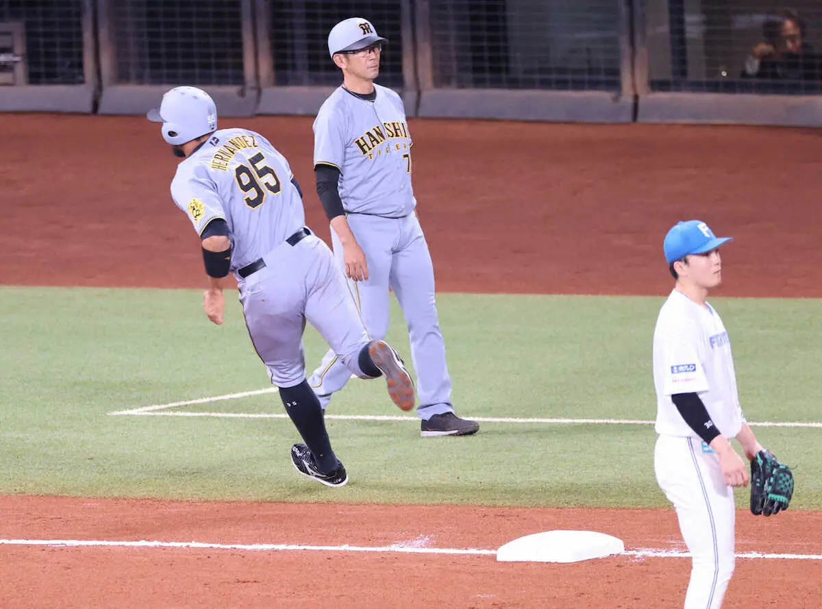 その少し前、阪神の4回表の攻撃では2死二塁で木浪聖也が左越えに大飛球。捕球されてチェンジとなったが、二塁走者のラモン・ヘルナンデスは三塁ベースを踏んだ後、コーチャーズボックス辺りで左に転回。田中秀太内野守備走塁コーチにぶつかりそうになっていた。