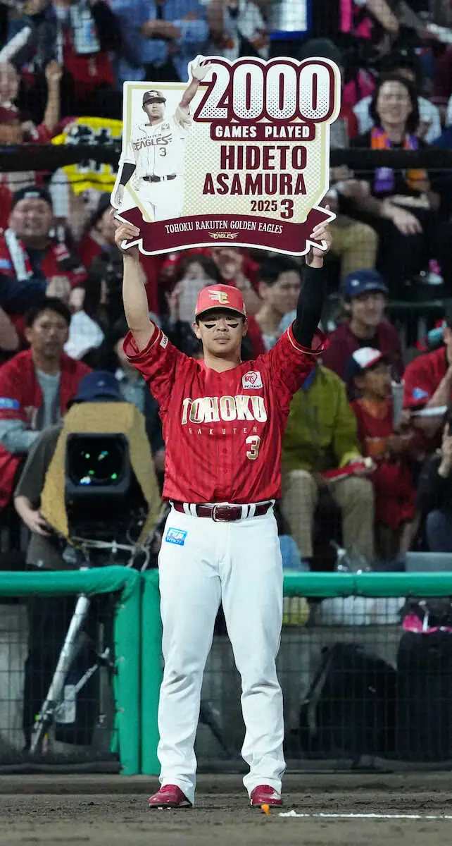 浅村は、達成後に広報を通じてコメントを発表。「まずは2000試合に到達できたこと、素直にうれしく思います。状態がいい時ばかりではなく、調子の悪い時でも信じて使い続けてくれた首脳陣、常に気を配って体のケアをしてくれたトレーナーの方々には感謝をしたいです」と周りの人たちに感謝のし、「これからも、ただ“出場”を積み重ねるのではなく、結果を出して、一試合一試合出場試合数を増やしていけるように頑張っていきます」とさらなる活躍を誓った。
