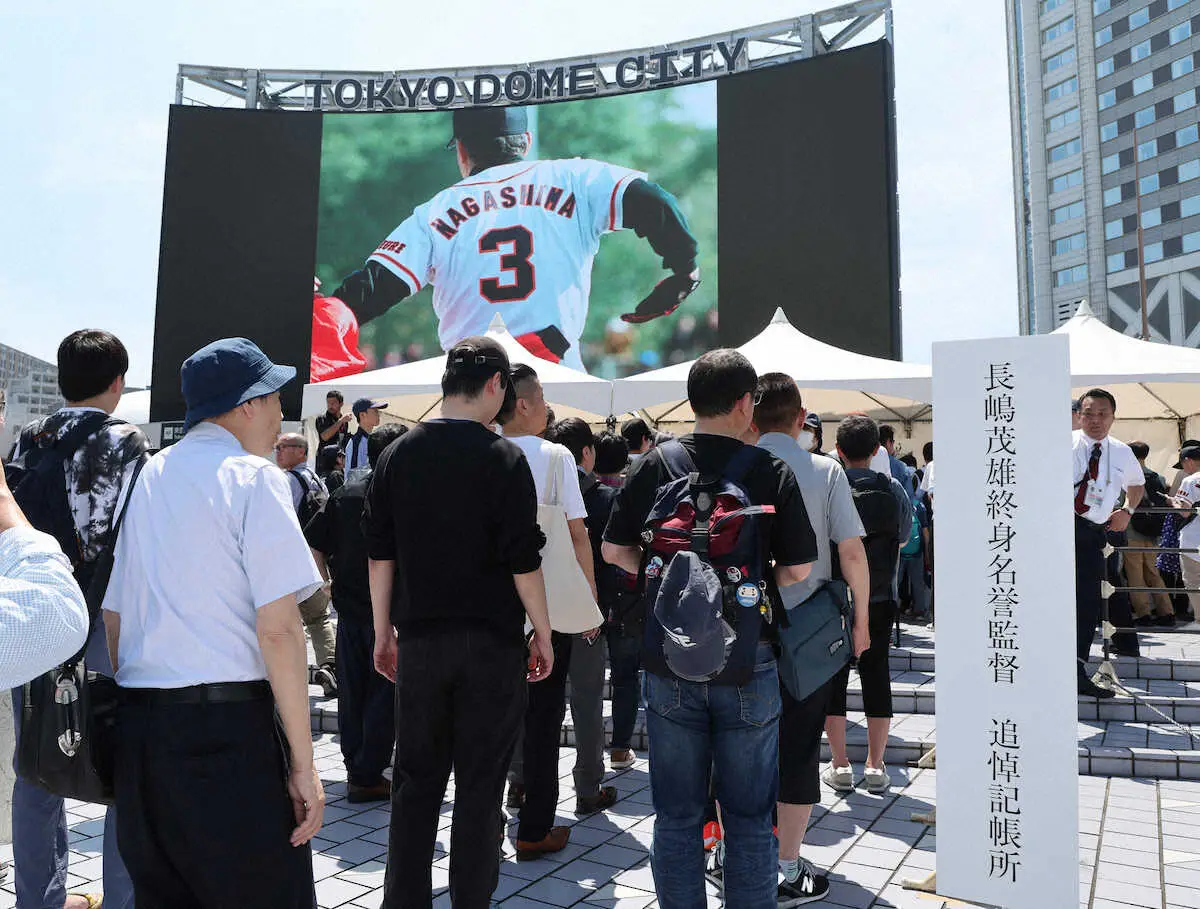 東京ドーム前の記帳所にたくさんのファンが記帳に訪れる(撮影・篠原岳夫) Photo by スポニチ 東京ドームに長嶋さん追悼記帳所設置 約100人が列、開始10分早まる 先頭… ギャラリーで見る この記事のフォト 2025年06月07日の画像一覧 もっと見る 2025年06月07日の画像をもっと見る