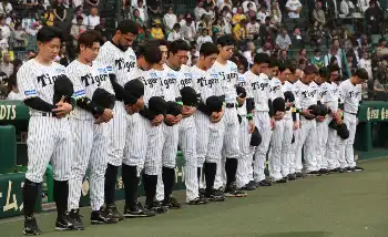 長嶋茂雄さんの死を悼み、黙とうするる阪神ナイン