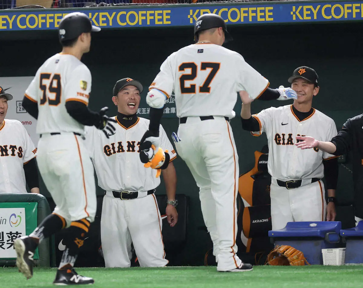 <巨・楽>8回、満塁本塁打を放った岸田(右)を出迎える阿部監督(撮影・沢田 明徳) Photo by スポニチ 巨人・阿部監督 長嶋さん告別式当日にドラマチック勝利「スカッとしまし… ギャラリーで見る この記事のフォト 2025年06月08日の画像一覧 もっと見る 2025年06月08日の画像をもっと見る
