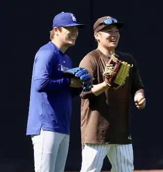 松井裕樹と山本由伸が談笑 ドジャース―パドレス首位攻防戦も試合前は“和やかムード”