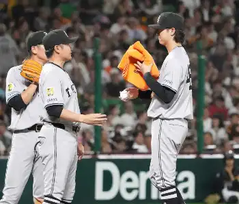 阪神 6回1死満塁、大ピンチに才木が踏ん張り、中村剛、源田をアウトに仕留める