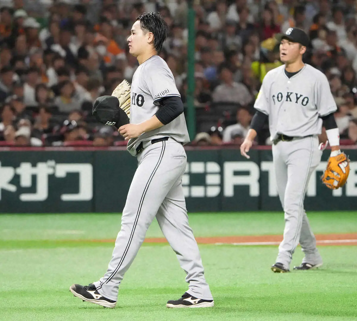 巨人・井上温大が自身初の危険球退場 2回、周東の頭部に死球