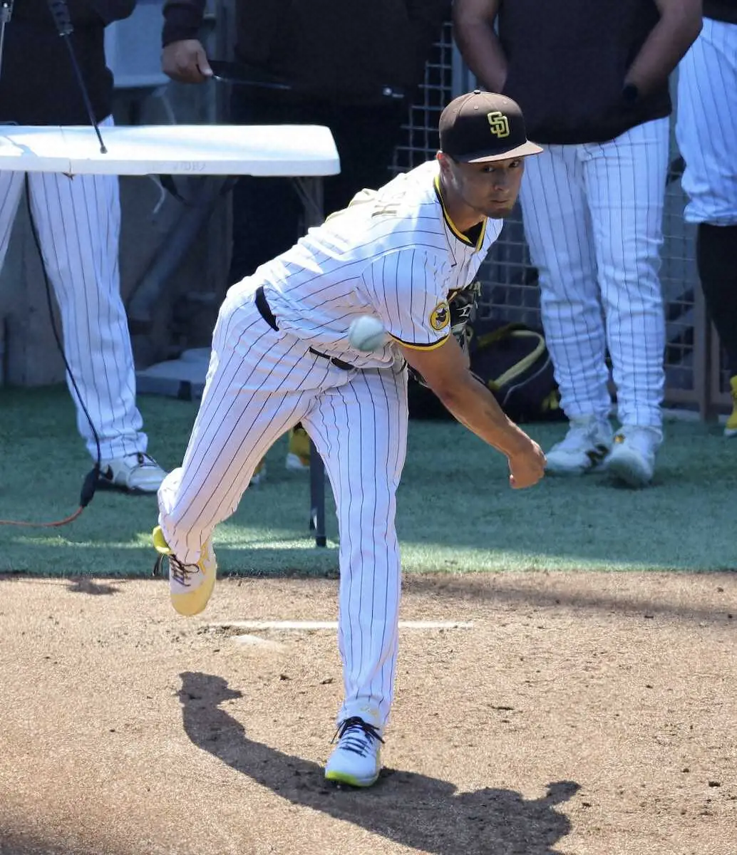 右肘の炎症のため負傷者リスト(IL)入りしているパドレスのダルビッシュ有投手(38)が9日(日本時間10日)、本拠でのドジャース戦前にブルペン投球を行った。