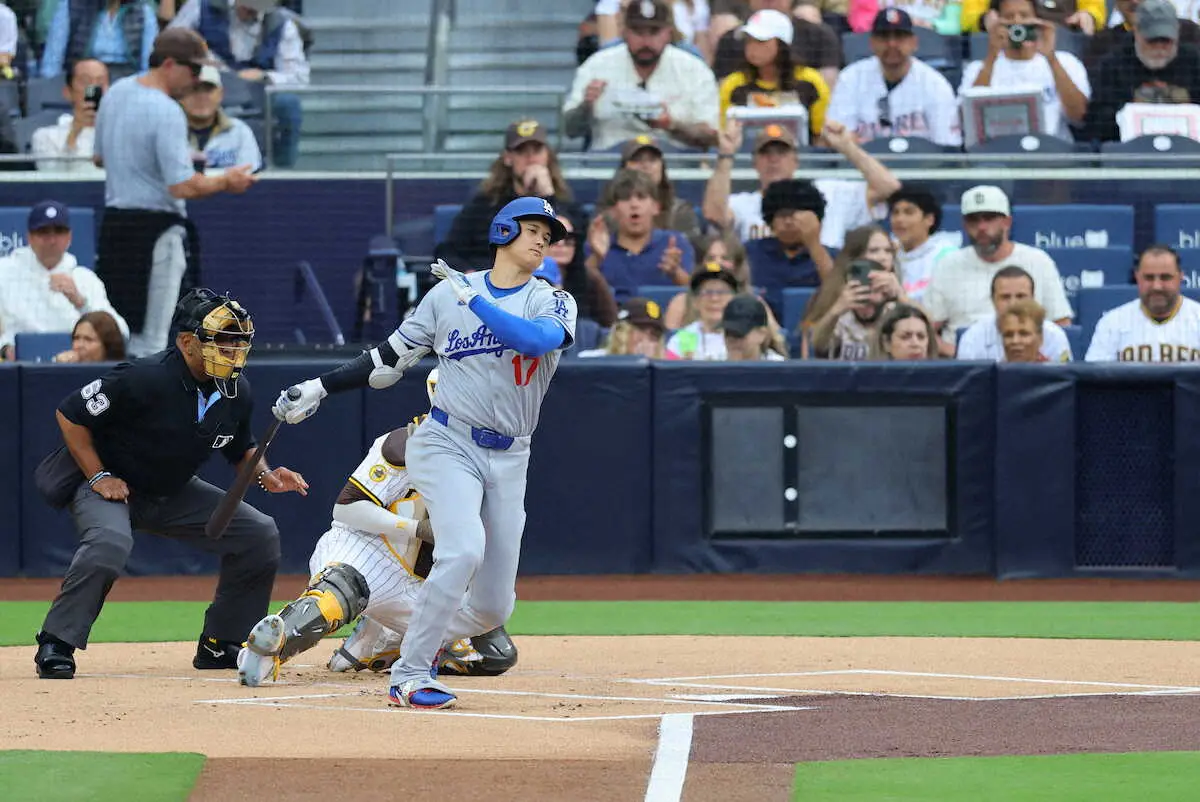 ドジャースの大谷翔平投手(30)が10日(日本時間11日)、敵地でのパドレス戦に「1番・DH」で先発出場。第1打席は空振り三振に倒れた。