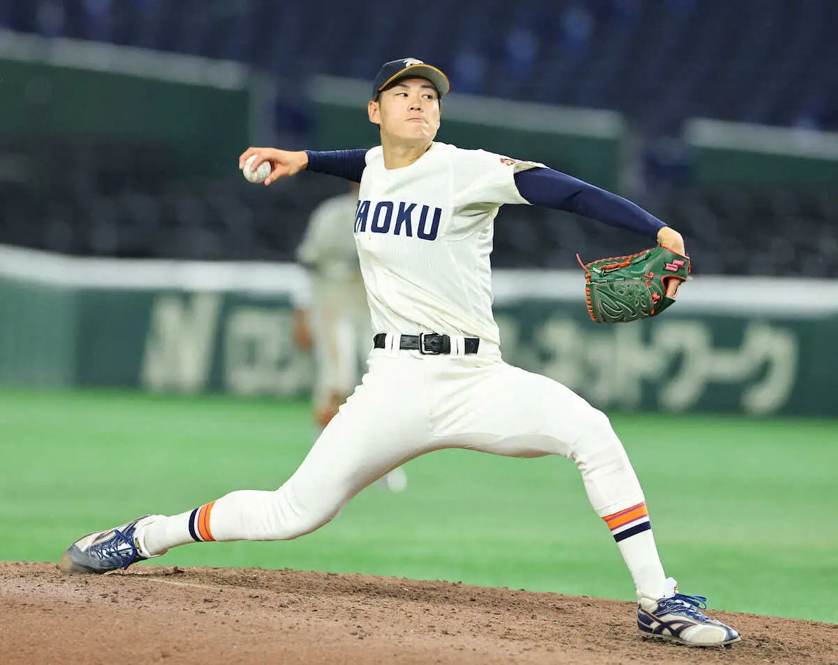 明秀学園日立(茨城)3年春、夏に甲子園出場を果たし、大学ではスケールアップした来秋のドラフト候補は「今日のような野球を続けて日本一を目指したい」と表情を引き締めた。
