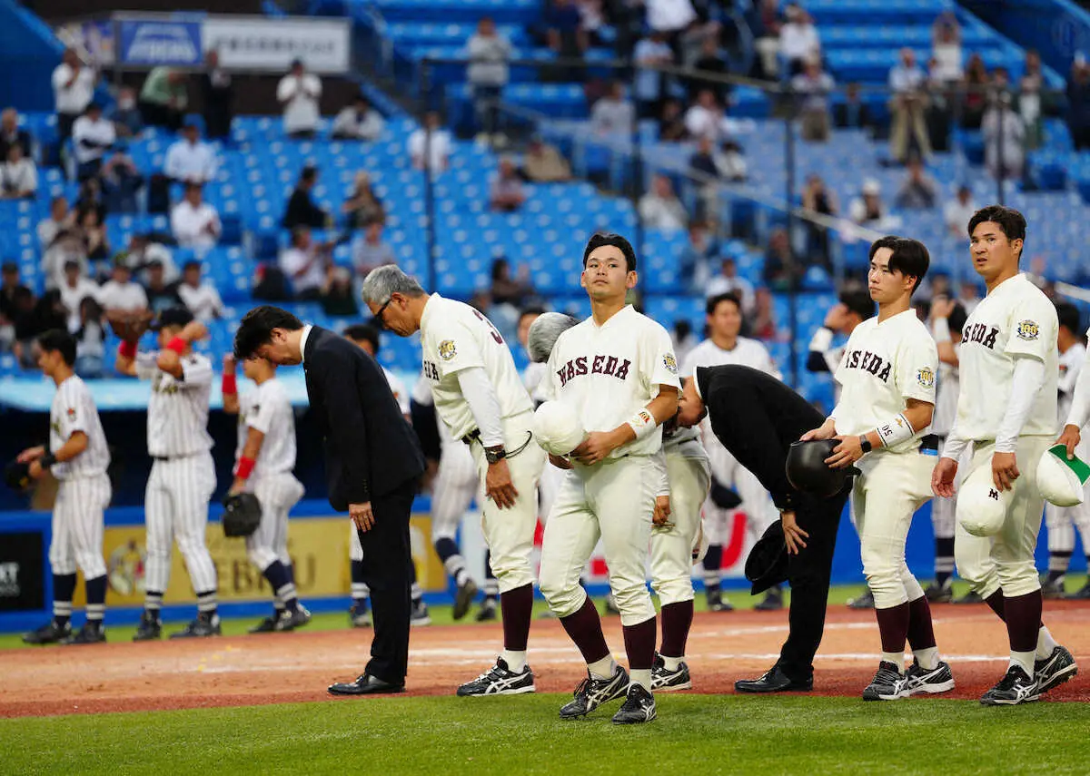 <早大・東海大>8回、東海大・砂子田(右)に代打満塁弾を浴びた早大・田和(撮影・木村 揚輔) Photo by スポニチ 早大、大会初のコールド負け…8強で姿消す 東海大に12失点で8回無念 小宮… ギャラリーで見る この記事のフォト 2025年06月13日の画像一覧 もっと見る 2025年06月13日の画像をもっと見る