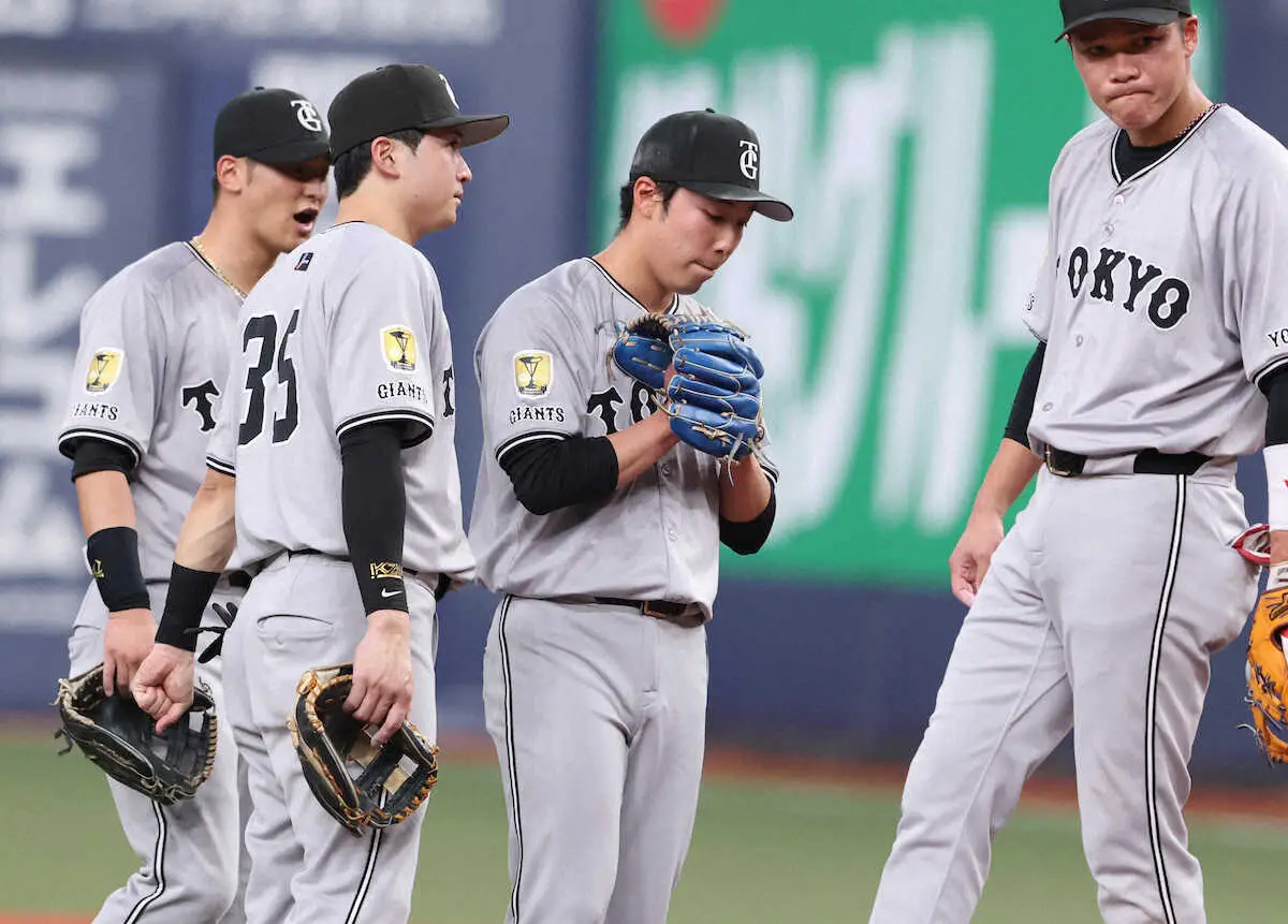 <オ・巨>3回、オリックス打線につかまり苦しい表情の赤星(左から3人目)(撮影・大森 寛明)