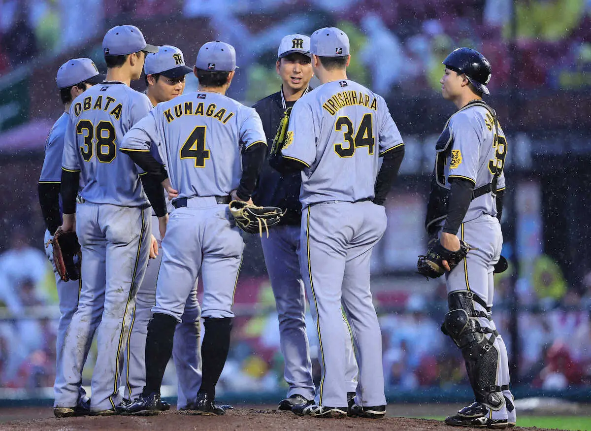 9回1死満塁では、途中出場の梅野に代えて糸原を代打起用する勝負手で、同点の押し出し四球をもぎとった。その裏の守りでは、1死二塁、ゴンザレスの3球目にマウンドへ足を運び、不安定な漆原に「どんどん勝負をするように」とハッパをかけた。手を打ちながら勝利に届かない。今は我慢の時だ。(倉世古 洋平)