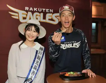 楽天が15日、神戸観光局から「神戸牛 柔らか赤身ステーキ3キロ」を贈呈された。本拠の楽天モバイルパークで行われた贈呈式では、神戸観光親善大使の市来碧唯さんが「辰己選手のご出身でもある神戸はあなたが望むものが見つかる街です。ぜひお越しください」とあいさつした。