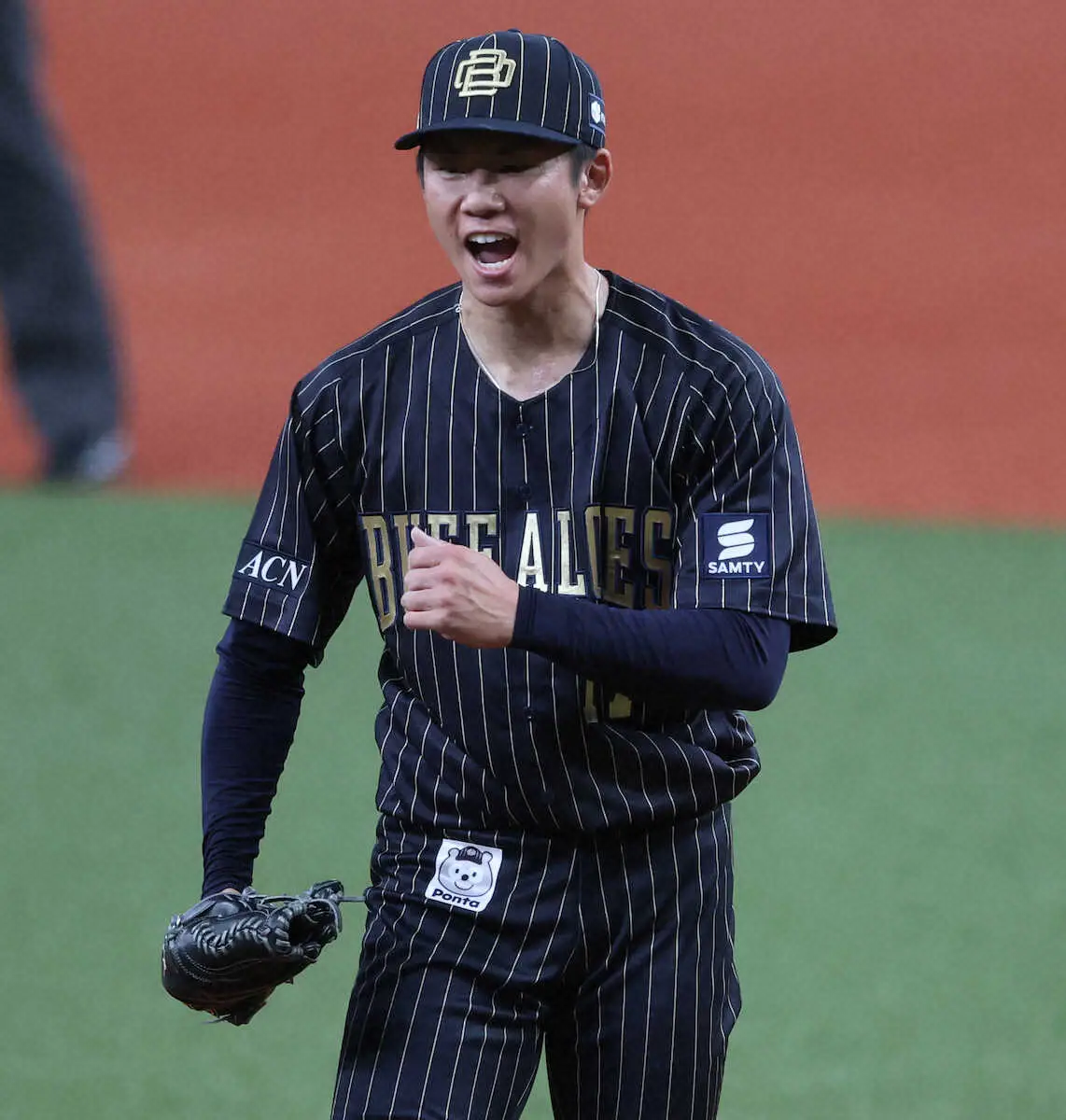 <オ・巨(1)>初回、吉川を空振り三振に仕留めてガッツポーズの曽谷(撮影・北條 貴史)