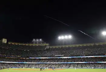 ドジャースが6―2と勝ち越した直後の5回、本拠ドジャースタジアムの上空には一筋の白い光が伸びた。この日、カリフォルニア州ではスペースX社のロケットが打ち上げられており、上空を通過したのはこのロケットとみられる。