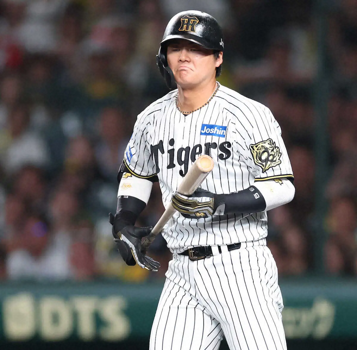 2点を追う7回1死から梅野に代わり登場。カウント1―2から4球目、ロッテ3番手・横山が投じた内角150キロの直球に手が出なかった。見逃し三振に終わり「情けない打席になった。結果の世界なので、必死に頑張ります」と前を向いた。