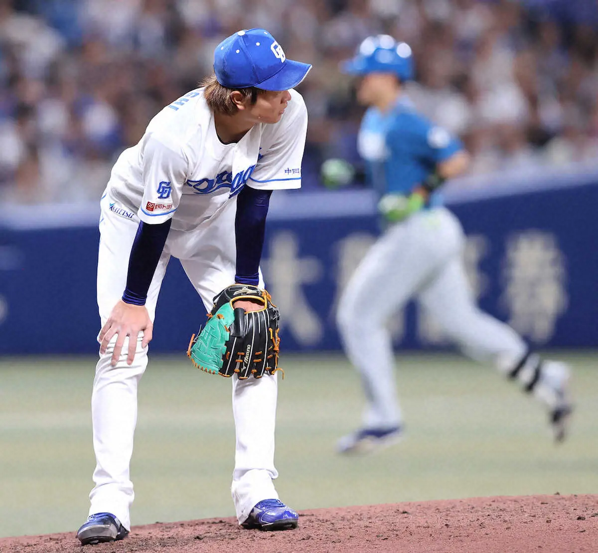 <中・日(2)>7回、清宮(右)にソロを打たれガックリの高橋宏(撮影・椎名 航)