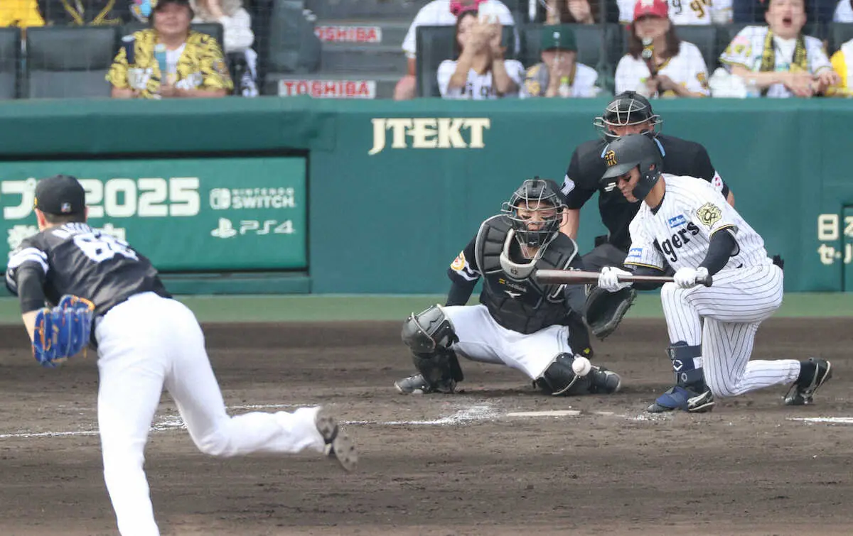 監督・藤川球児は「作戦ですので」と内情は語らなかったが、恐らく初球からセーフティースクイズで通したのではないか。坂本は投球動作に入ると、4球ともバントの構えをしていた。