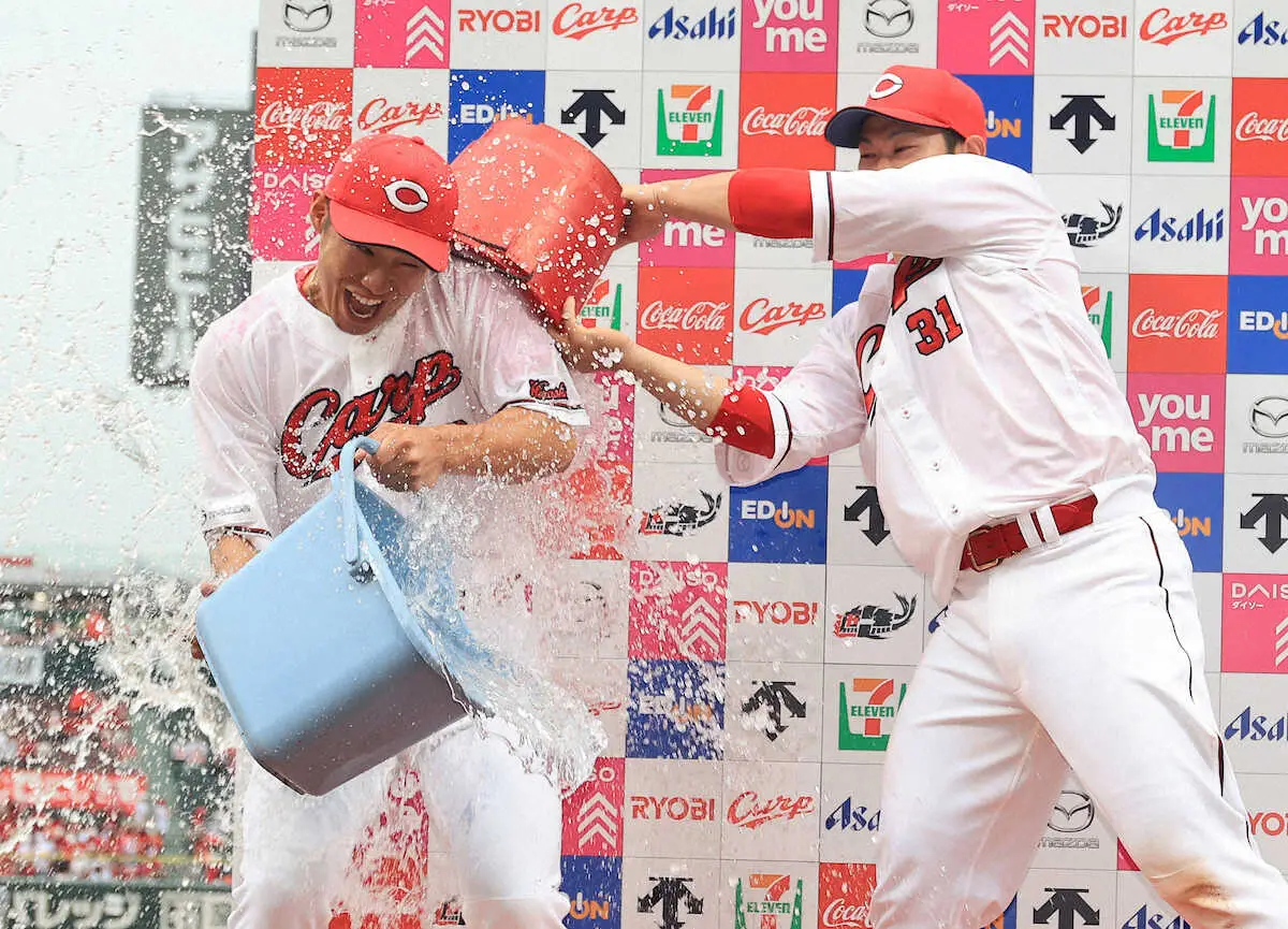 0―2の4回2死満塁。逆転を願うコイ党の視線が代打・中村奨に集まる中、期待に応えた。先発左腕・藤井が投じた初球のツーシームを仕留めた。痛烈な打球は左翼フェンスを直撃する走者一掃の逆転二塁打。送球間に三塁も陥れると、拳を突き上げて大歓声を一身に浴びた。