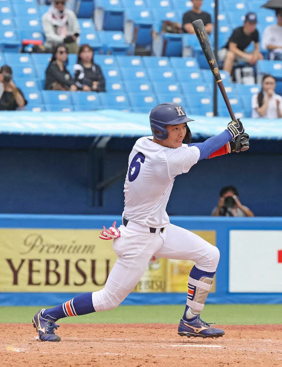 <東都大学野球 日大・駒大>5回、適時三塁打を放った駒大・鈴木塁(撮影・西海健太郎)