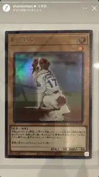 大谷 愛犬デコピンの「遊戯王」カード公開 市販予定なしの激レアもの「マウンドに降臨した幸せの天使」