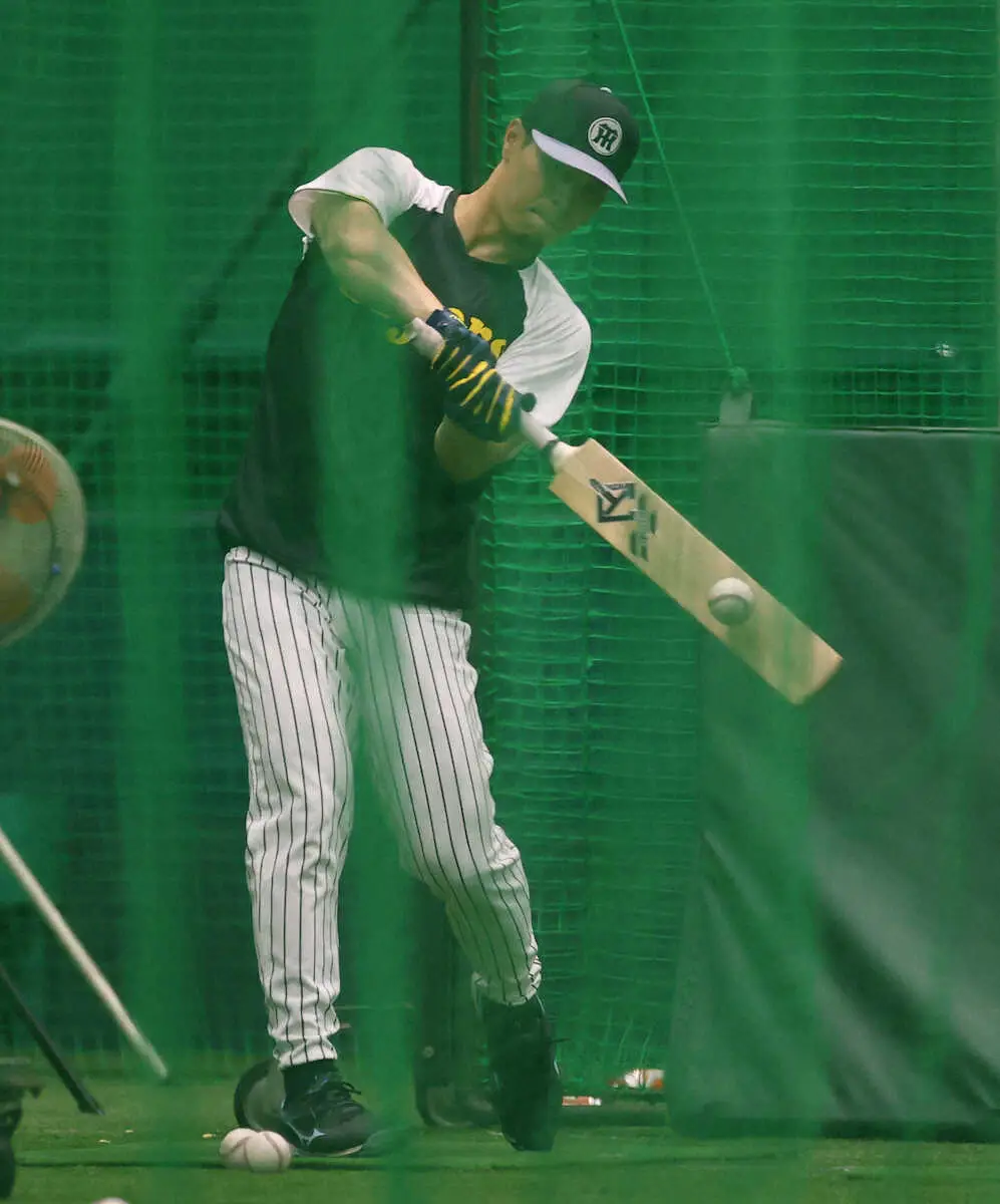 1日の休養をへて、佐藤輝が再始動した。27日のリーグ戦再開へ向け、甲子園室内での練習に参加。その手には、クリケットバットが握られていた。フリー打撃には参加せず、そのバットでトス打撃を敢行。オフの自主トレ期間中や沖縄・宜野座キャンプでも取り組んだ、ボールを面で捉えて押し込んで打つ感覚を再確認することに時間を費やした。