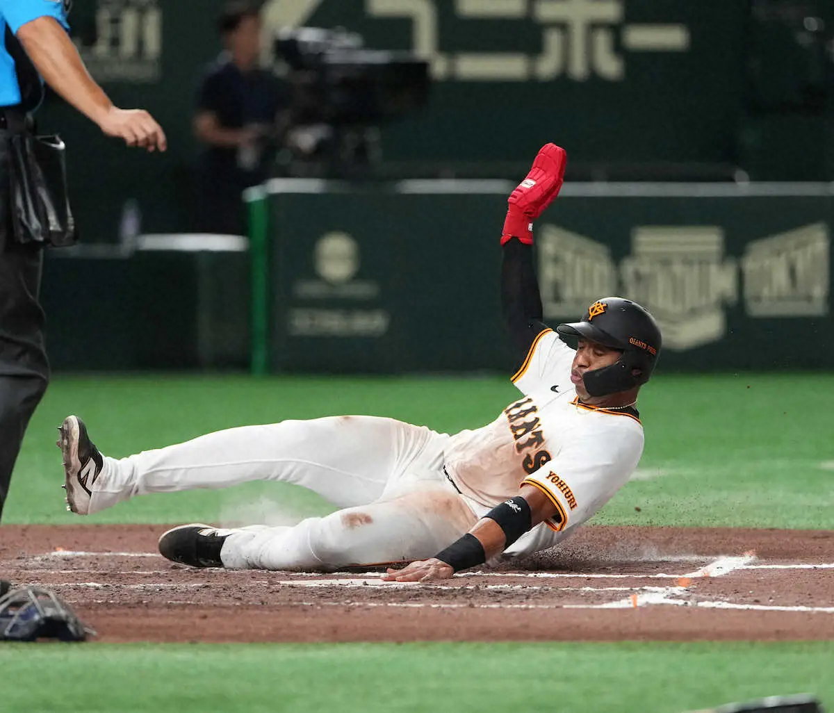 【画像・写真】巨人・オコエ瑠偉が7年ぶり三塁打!フェン直からのヘッスラで決め、泉口犠飛で先制ホームイン