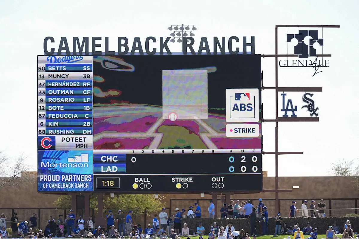 オープン戦で、機械判定を使用したリプレーがスコアボードに表示される(AP)