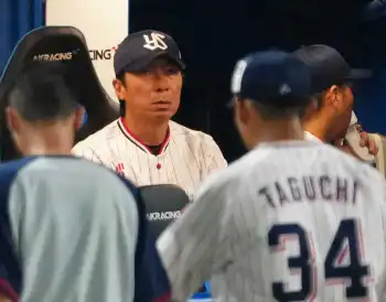 石井投手コーチとともにベンチに退くと、ほどなくして高津監督が球審に矢崎への交代を告げた。何らかのアクシデントが発生したとみられるが、わずか6球での降板にスタンドのファンからは落胆の声が飛んだ。