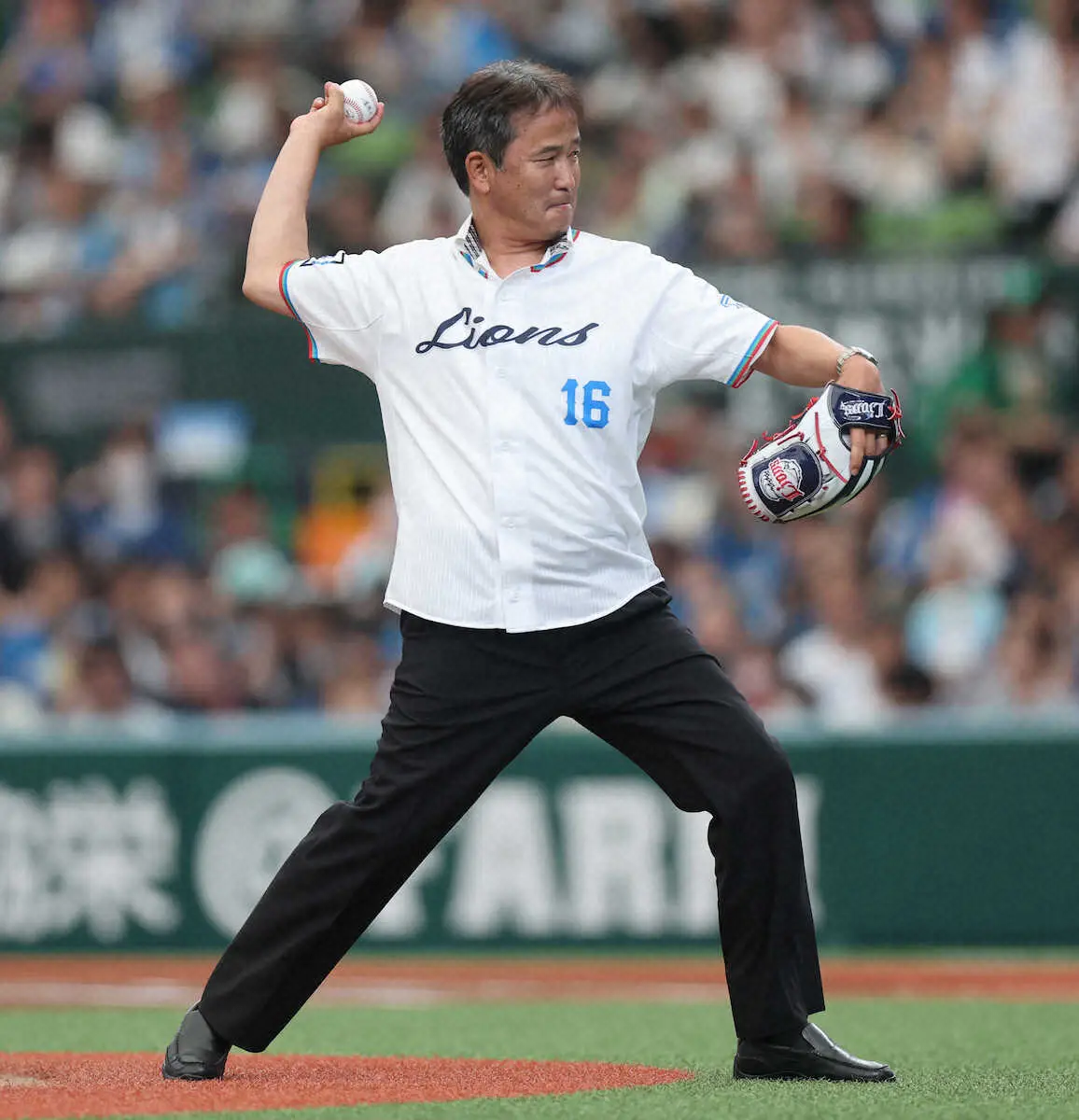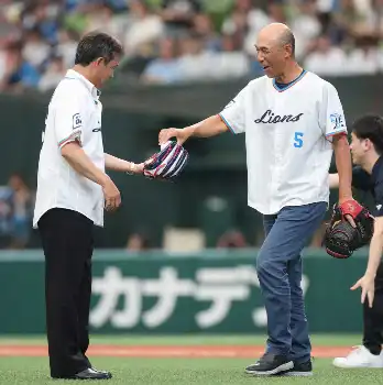 <西・日>セレモニアルピッチで投手を務めた潮崎SA(左)と捕手を務めた和田一浩氏(撮影・篠原岳夫) Photo by スポニチ 和田一浩氏&潮崎哲也氏が豪華共演! 西武戦「セレモニアルキャッチ」登場… ギャラリーで見る この記事のフォト 2025年06月29日の画像一覧 もっと見る 2025年06月29日の画像をもっと見る
